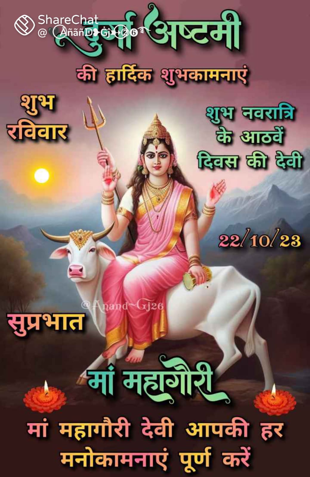 डेस्कः नवरात्र के नौ दिन मां दुर्गा को अलग-अलग स्वरूपों की पूजा की जाती है. आज (22 अक्टूबर) को चैत्र नवरात्रि का आठवां दिन है. नवरात्रि के दौरान महाअष्टमी का तिथि हिंदू धर्म में एक महत्वपूर्ण तिथि माना जाता है. इस दिन देवी दुर्गा के महागौरी स्वरूप की पूजा करने का विधान है. इस बार शारदीय नवरात्रि की अष्टमी तिथि 22 अक्टूबर को पड़ रहा है.